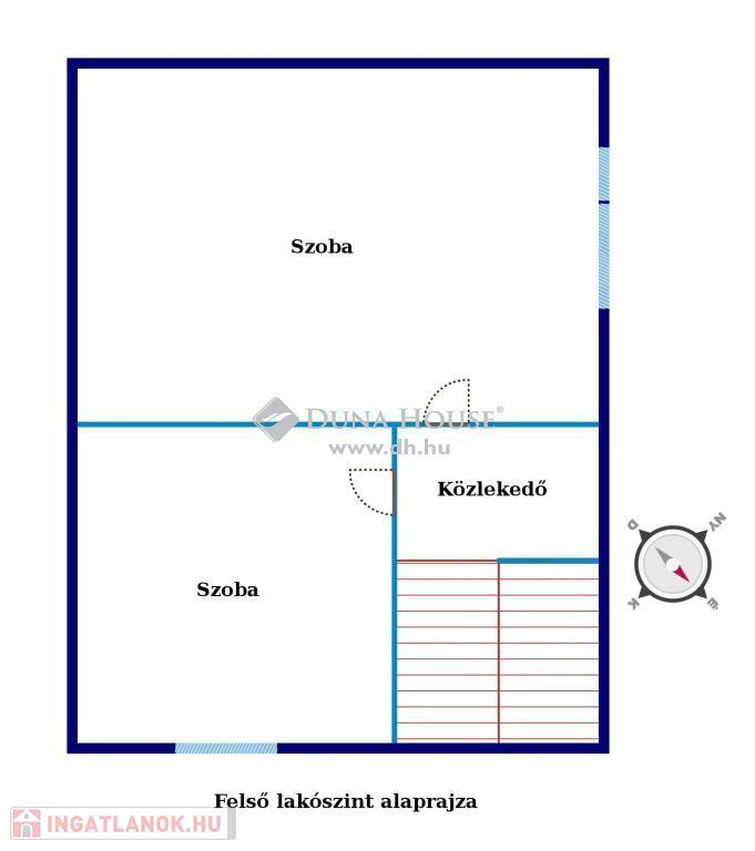A felső szinten két különnyíló hálószoba került kialakításra, de fürdőszoba, wc itt és beépíthető.