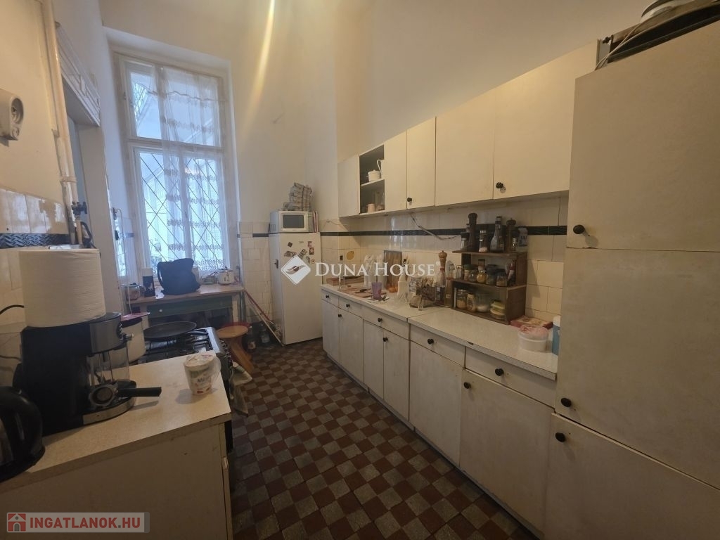 műemléki környezetben igazi polgári lakás eladó!A lakás 1. emeleti 105 nm-es 3 és fél szobás .A nagyszobák D-i tájolásúak, napfényesek, de az udvar felé néző szobák fényviszonya is jó.. Belmagasság: 3,85 m galériázható! A lakás műszaki állapota jó, a fűtés kovektoros , de a kémények béleltek. Az elektromos vezetékek 20 éve lettek kicserélve. Vízóra van.A kamrának, a fürdőszobának és a WC-nek is van ablaka, rendezett lichtofra nyílnak. Közös költség: 33.000 FtA lakásnak egy tulajdonosa van, tehermentes. A pincében egy 12 m2-es saját tároló is tartozik a lakáshoz.Jelen állapotában is lakható a lakás, de esztétikai felújítást igényel. Akár több lakássá is alakítható! (Méretes alaprajzot e-mailben tudok küldeni)A ház kívül belül szép, lift van, a tető felújított. Az udvarban kerékpár elhelyezésre is van lehetőség. A házat egy sörgyáros építette gyermekeinek, ennek megfelelően minőségi anyagokból készült. 60 cm-es főfalak, koronás vörösfenyő nyílászárók. Az utca csendes egyirányú, minimális átmenőforgalom. A lokációja remek: éttermek, kávézók, egyetemek, múzeumok karnyújtásnyira! Tömegközlekedés: Rákóczi tér 4-6-os villamos, metrók 5 percre. Megtekintés rugalmasan, Hívjon akár hétvégén is!