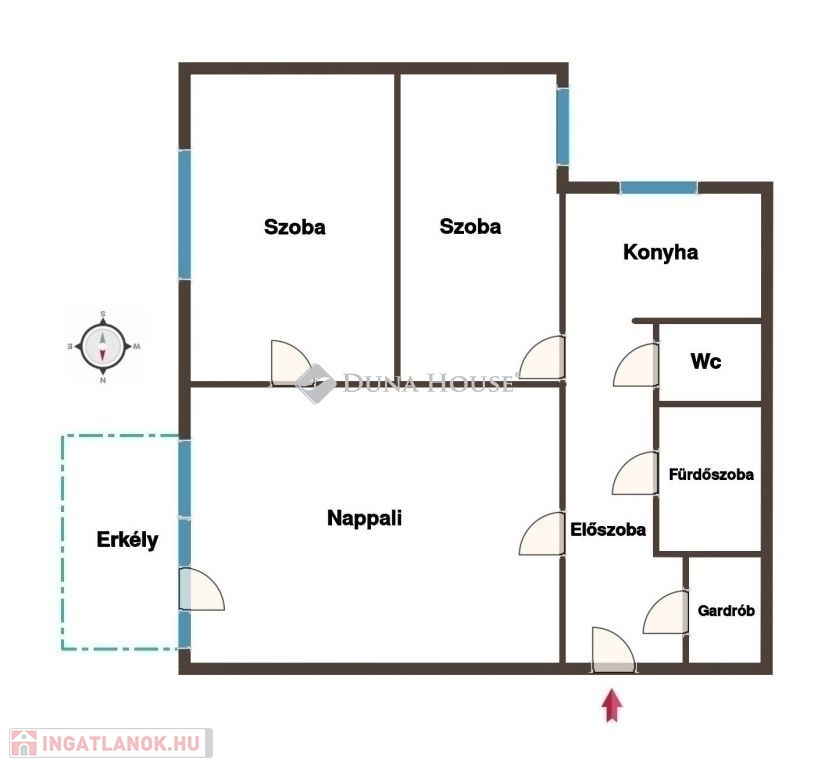 A lakás remek elrendezésű, ideális családosok, összeköltözők számára is. Gardróbszobája igazán praktikus, a mosógépkiállás ide került áthelyezésre, mely lehetővé tette, hogy a fürdőszobába sarokkádat építhessenek be. A gardrób egyébként könnyen a fürdőszobához is nyitható.