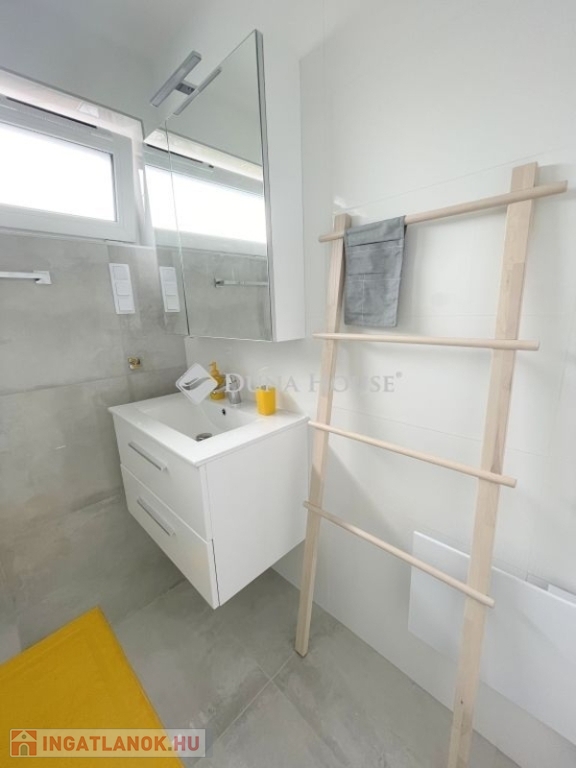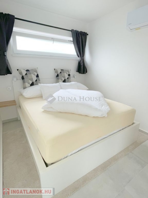 Az ingatlan terei kivétel nélkül újszerű állapotnak örvendenek, mindössze 5 évvel ezelőtt épült, azóta is fokozottan figyeltek állapotára, melynek köszönhetően jelenlegi állapotában, bármilyen karbantartás, felújítás nélkül használatba vehető. Teljesen berendezett - a lakásban található minden bútor, ingóság az új tulajdonost illeti. A berendezés szálláshelyként való hasznosításra is alkalmas, melyhez való engedélyekkel az ingatlan jelenleg is rendelkezik. Fűtését és hűtését hőszivattyús klímák biztosítják, melyek H tarifás áramról is gazdaságosan üzemletethetőek. A nappali meleg napokon történő árnyékolása komfortos, távirányítható elektromos redőnyökkel megoldott.