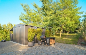 A kertérszkedéshez, műveléshez, illetve háztartáshoz szükséges dolgok tárolása a házikó alatti száraz szuterénhelyiségben, illetve a közelében elhelyezett, szintén újszerű, mobil tárolóházban is megoldott.