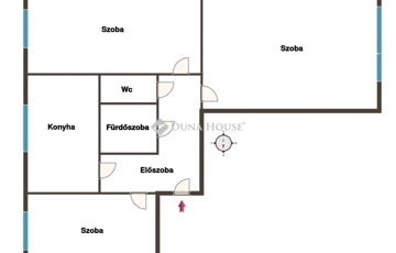 Az ingatlanban egy tágas nappaliszoba, két hálószoba (mind külön bejáratúak), egy ablakos konyha, egy fürdőszoba, egy wc, és a helyiségeket összekötő előszoba - közlekedő helyiségek kaptak helyet. A lakás kifejezetten parktikus elrendezésű, különnyíló helyiségei okán családosoknak is ideális.